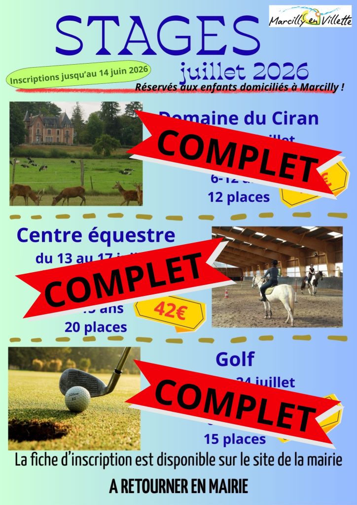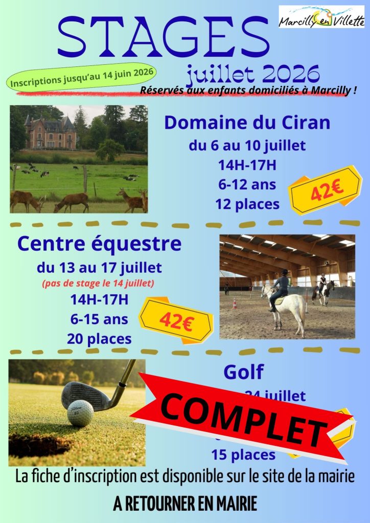 Domaine du Ciran : du 6 au 10 juillet Centre équestre : du 13 au 17 juillet (pas de stage le…