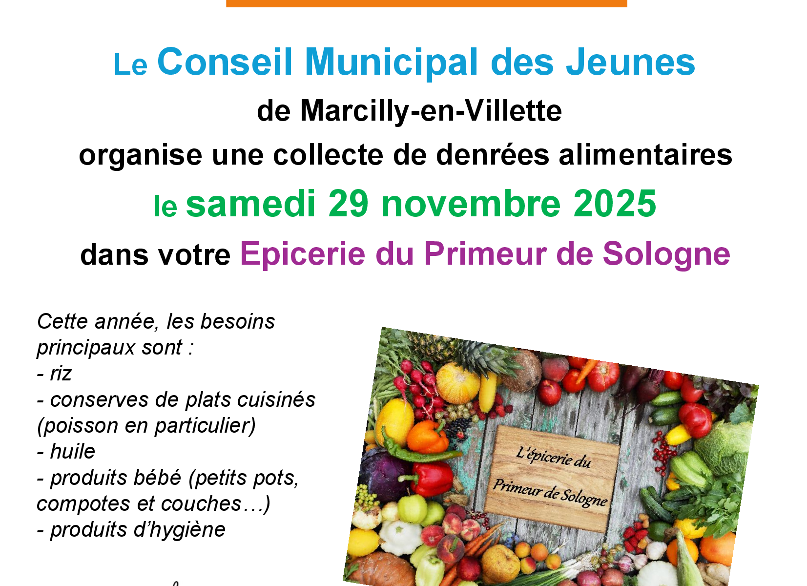 Le samedi 29 novembre, le Conseil Municipal des Jeunes organise une collecte pour la banque alimentaire.