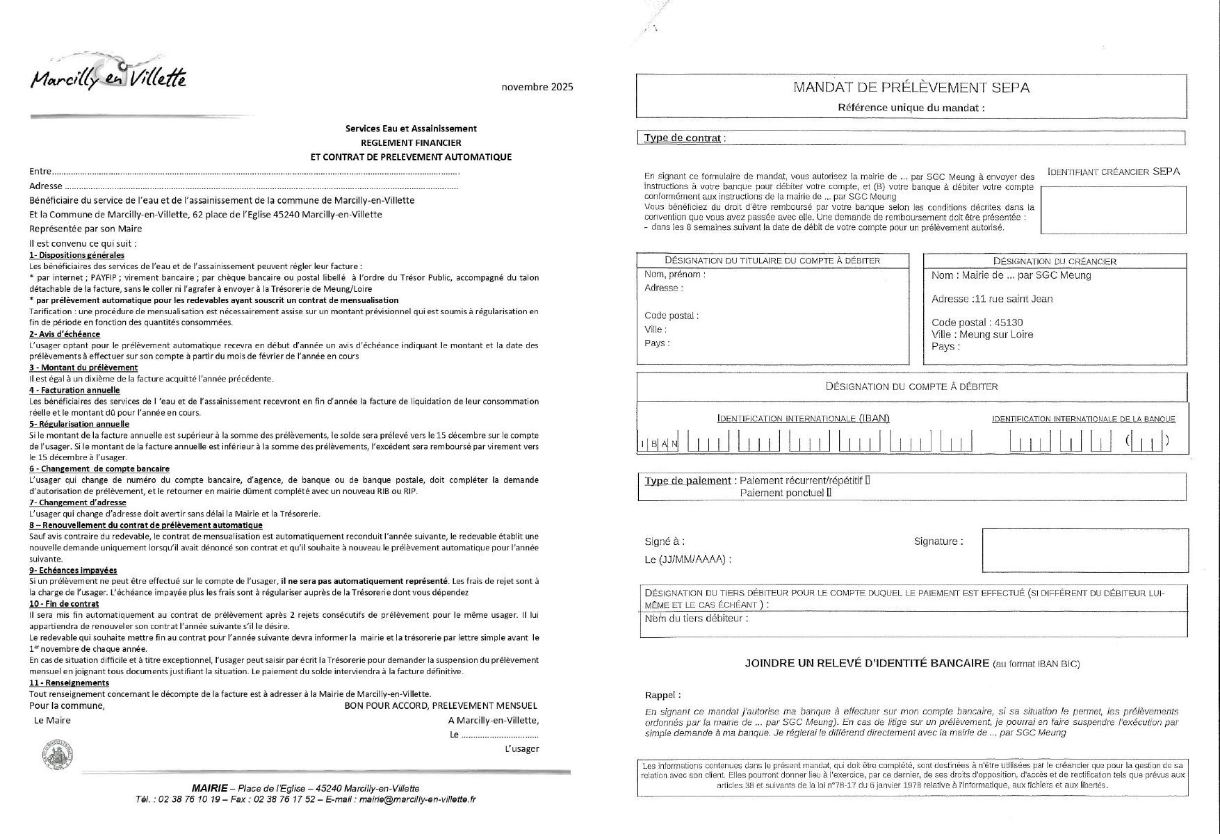 Si vous souhaitez mensualiser votre facture d’eau, vous avez jusqu’au 15 décembre 2025 pour en faire la demande en remplissant les formulaires joints