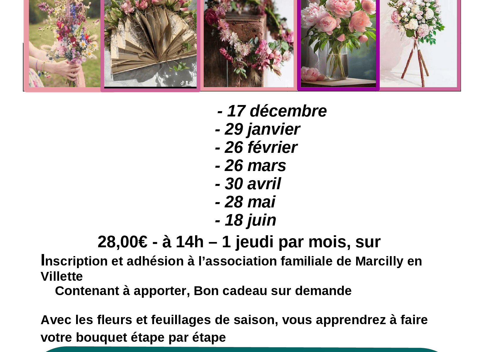Venez découvrir l’art floral et créer vos bouquets et compositions florales avec l’association familiale.
