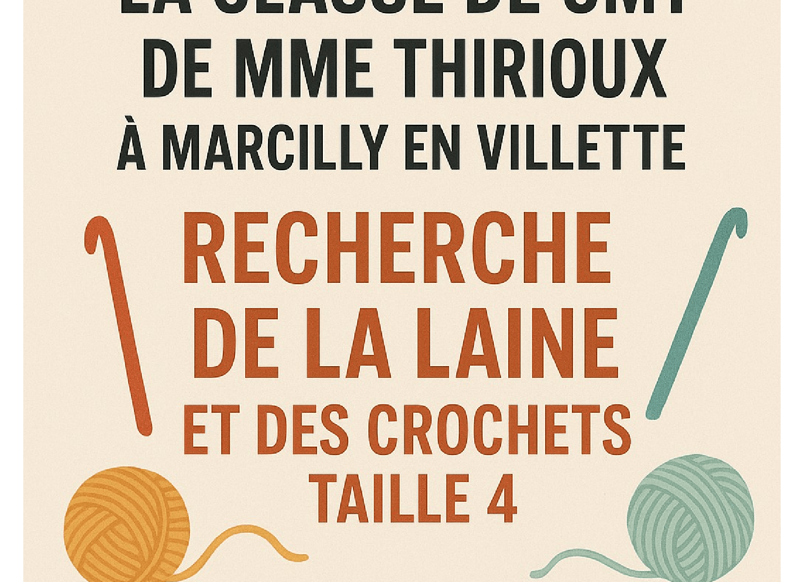 La classe de CM1 recherche de la laine et des crochets pour un projet scolaire.