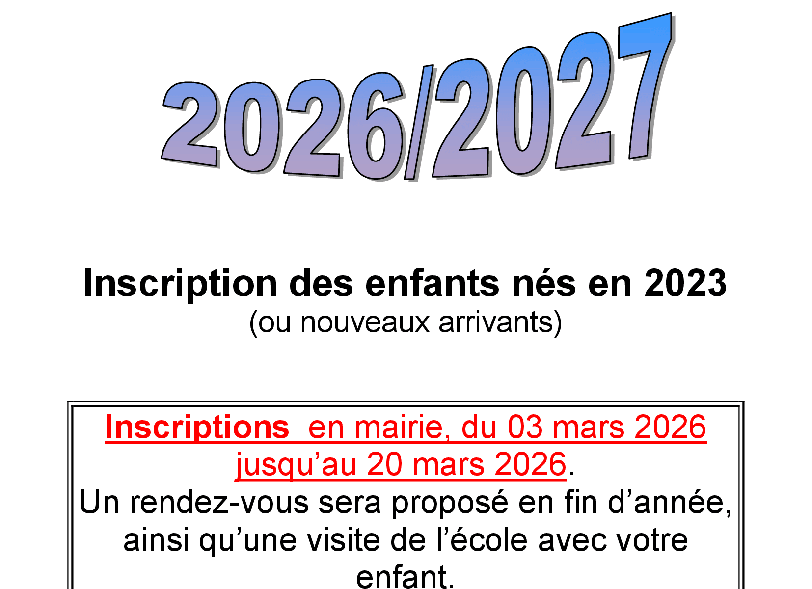 Inscription des enfants nés en 2023 (ou nouveaux arrivants).