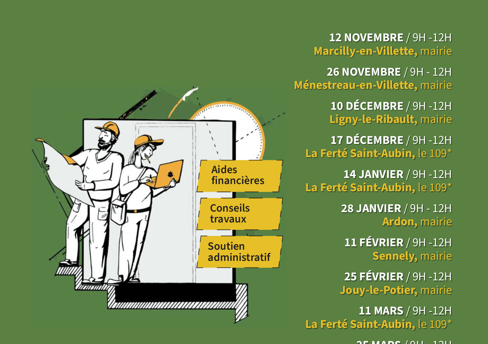 Dans le cadre de l’Opération Programmée de l’Amélioration de l’Habitat (OPAH), pour la rénovation de votre habitat, la Communauté de communes des Portes de Sologne (CCPS) organise, avec ses partenaires, des permanences à la CCPS, 109 rue du Maréchal Joffre à La Ferté Saint-Aubin, sur rendez-vous.