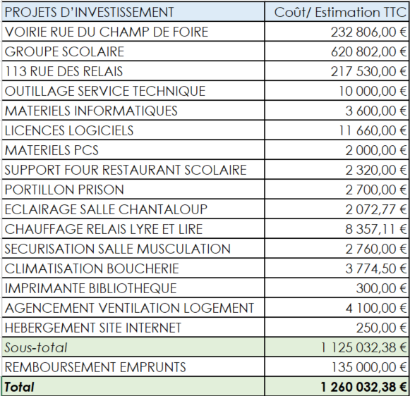 Budget d’investissement 1 182 800,76€