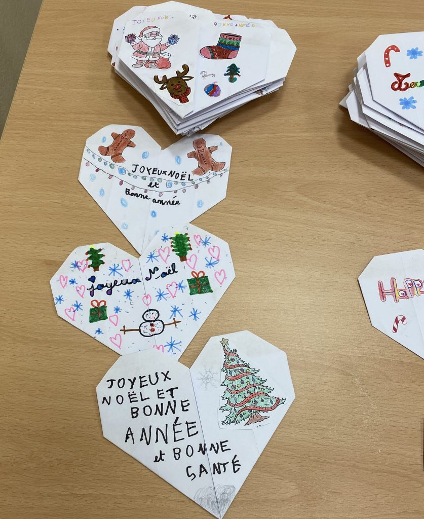 A l’occasion des fêtes de fin d’année, les jeunes ont réalisé des panneaux pour décorer la place de l’Eglise et confectionné des marque-pages à insérer dans les colis pour nos aînés.